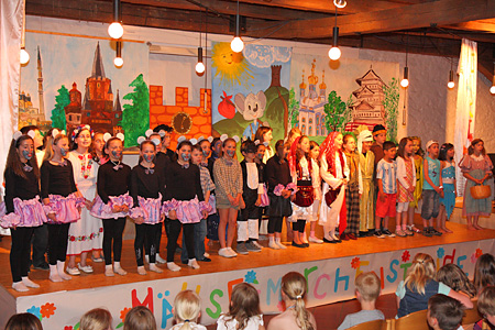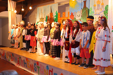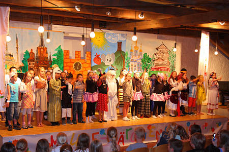 Alle INKI-Kinder stehen auf der Bühne und verabschieden sich.