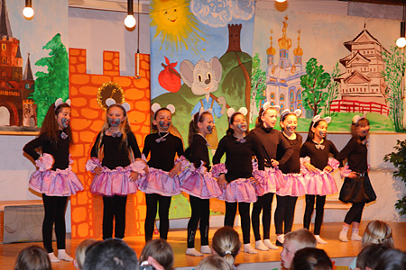 Die Mäusetanzgruppe bereichert das Stück zwischen den Szenen.