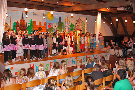 Die Mäusegruppe präsentiert sich vor dem Auftritt.