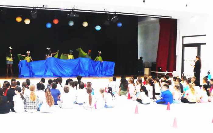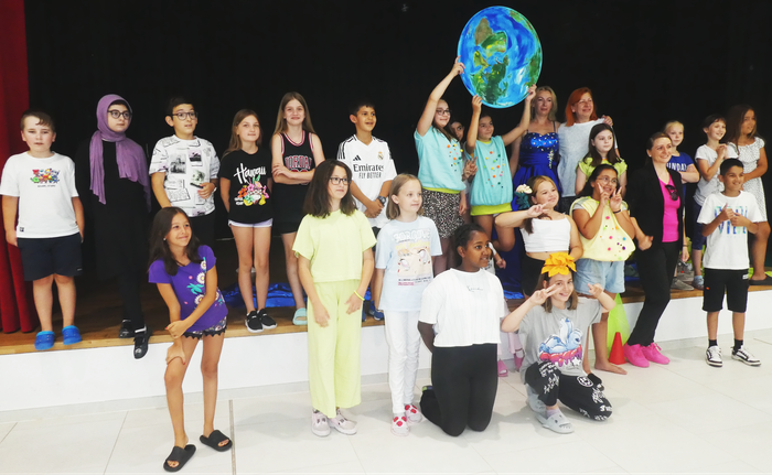 Die jungen Schauspieler/innen und Frau Pfeiffer mit ihren beiden Mitarbeiterinnen freuten sich über den starken Applaus.