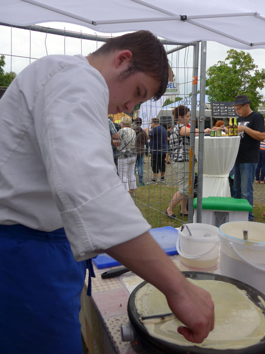 Auch “Cantina International” war mit einem Stand beteiligt. Ein Auszubildender fertigt hier hauchdünne Crepes.