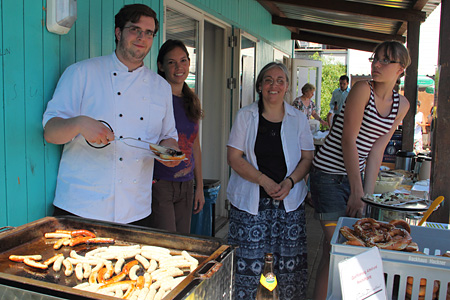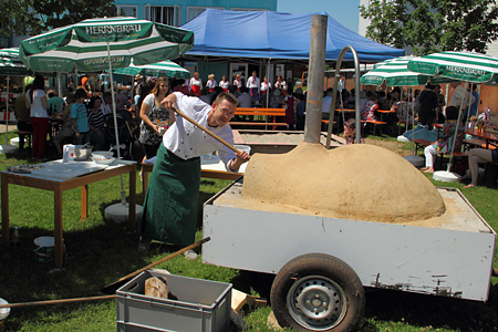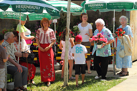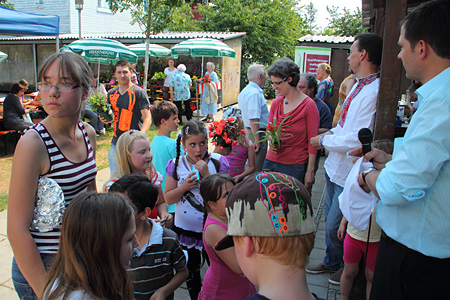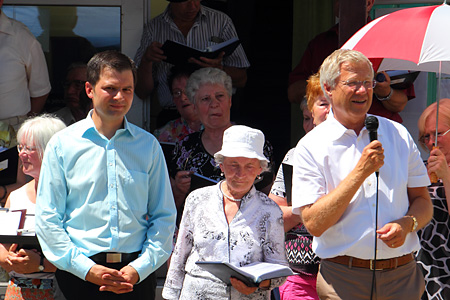 Nach einem ersten Lied vom Chor der Singenden Herzen und bei bestem Wetter eröffnen Johannes Hörner und Pfarrer Herrgen das Sommerfest 2012.